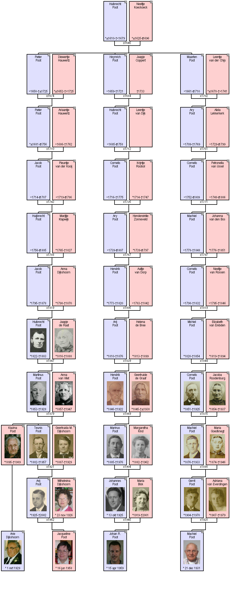 De onderzoekers naar de stamboom Poot zijn uiteraard familie van elkaar. Zij stammen af van 3 broers en hebben een familierelatie van 8x achter neef/nicht.